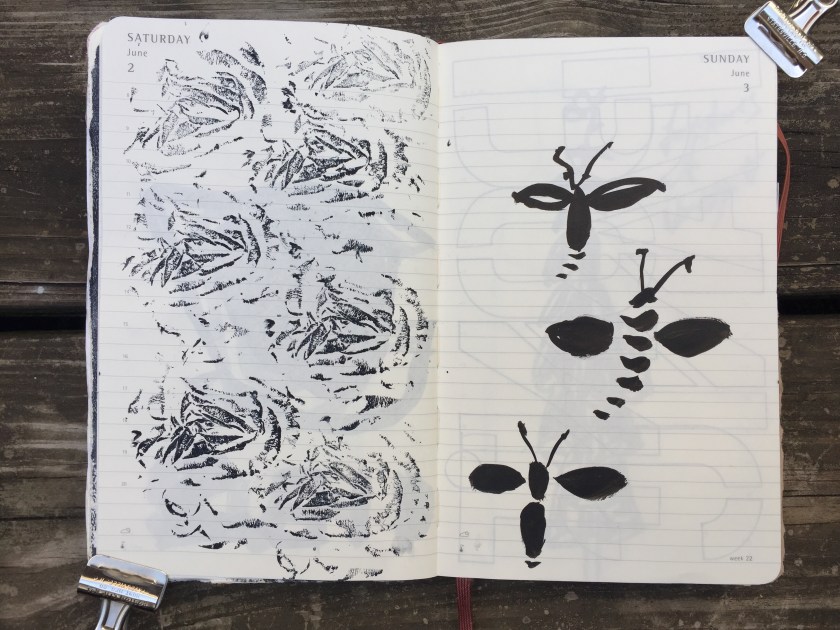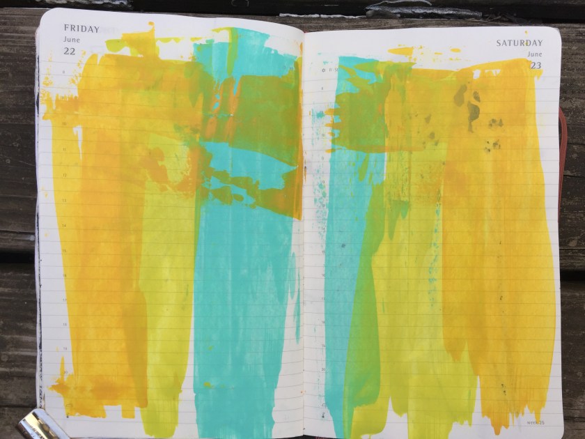 Lots of sketches and splats of colour in June. Two weeks of pages were completed while I was on holiday in England so there are some good memories in those pages.
