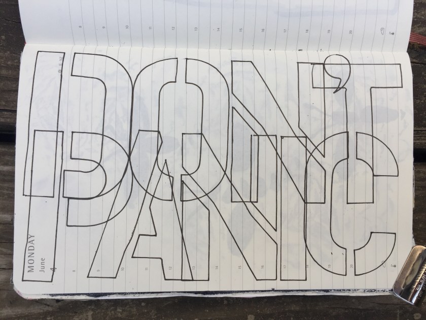 I like ‘Don’t panic’ as I did that page right before we flew to England and I was panicking! I am an airport panicker, always worried I have forgotten something or something will go wrong!
