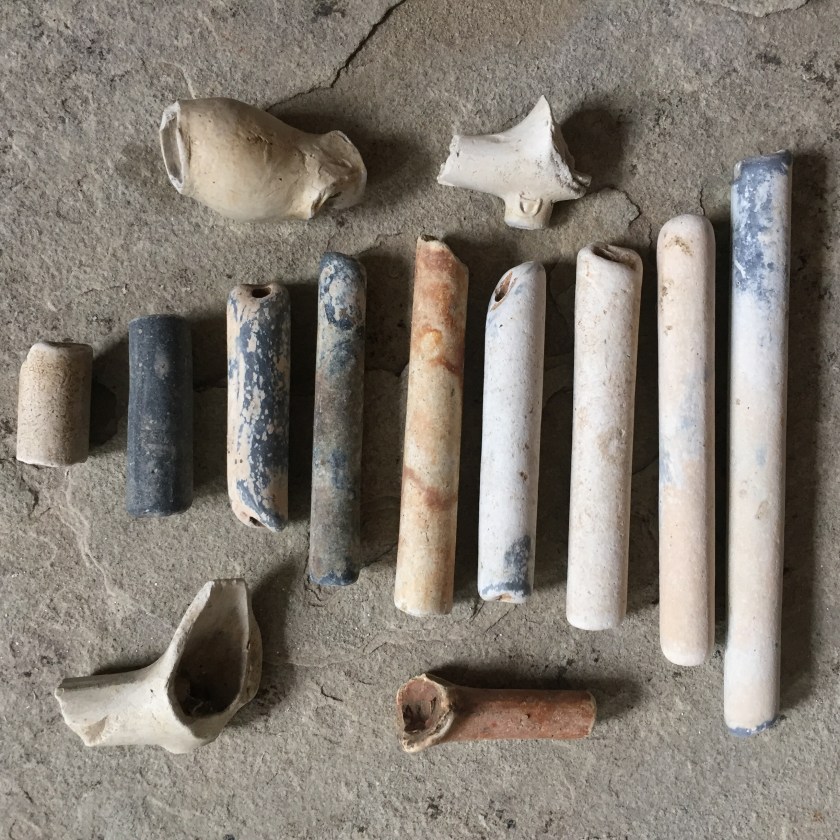 Immediately I began to spot clay pipe stem pieces and beach tumbled pottery shards. I had read a lot about the clay pipes smoked and discarded in days of old and I was excited to see them.  Yes, I know people find coins and all kinds of amazing treasures but for me the pottery and the pipes were treasure abound.
