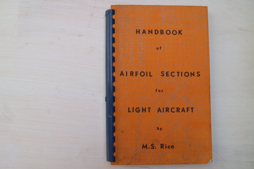 -A ‘Handbook of Airfoil Sections for Light Aircraft’ which has the dreaded spiral spine but I do love the imagery in this book and the 1971 orange cover.