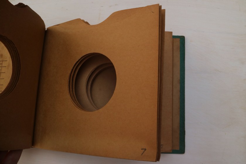 – an old vinyl record book which is basically kraft paper which I love and the holes in every page will look good I think, but this book is super delicate.