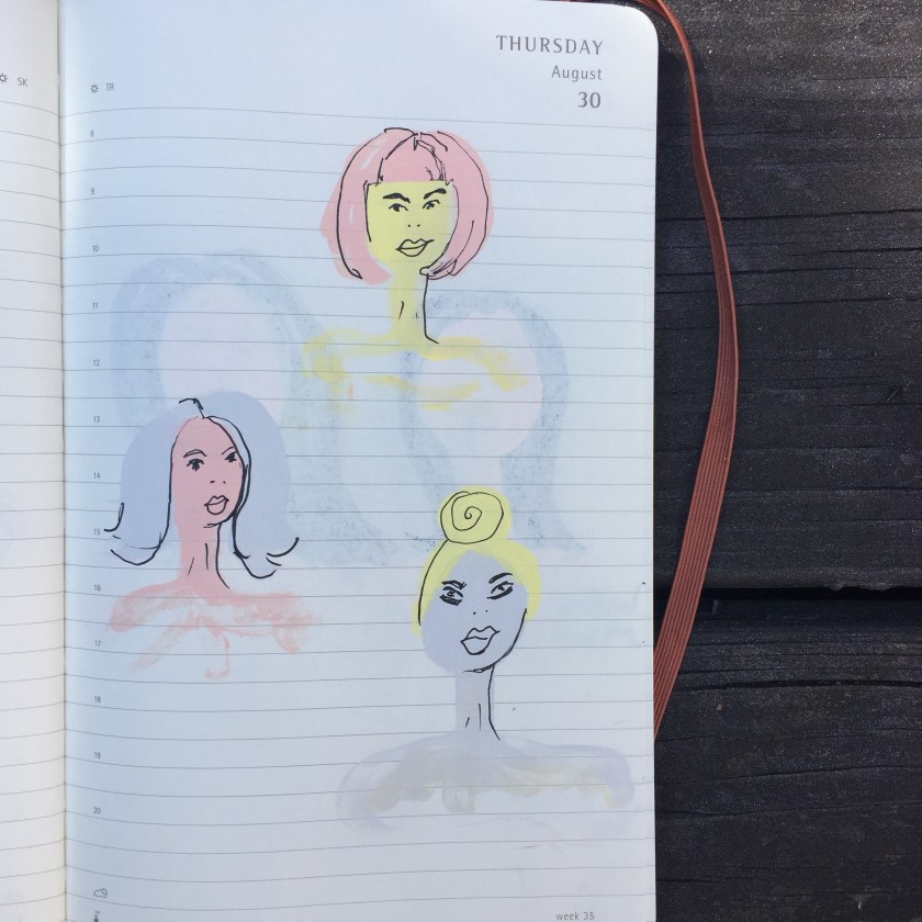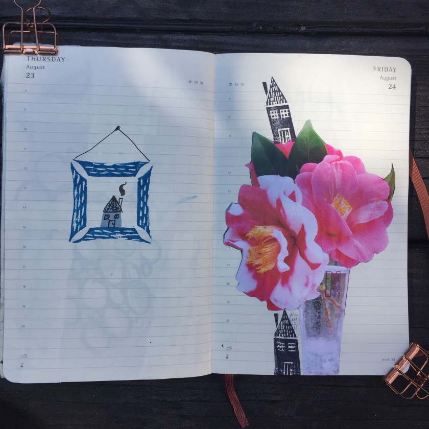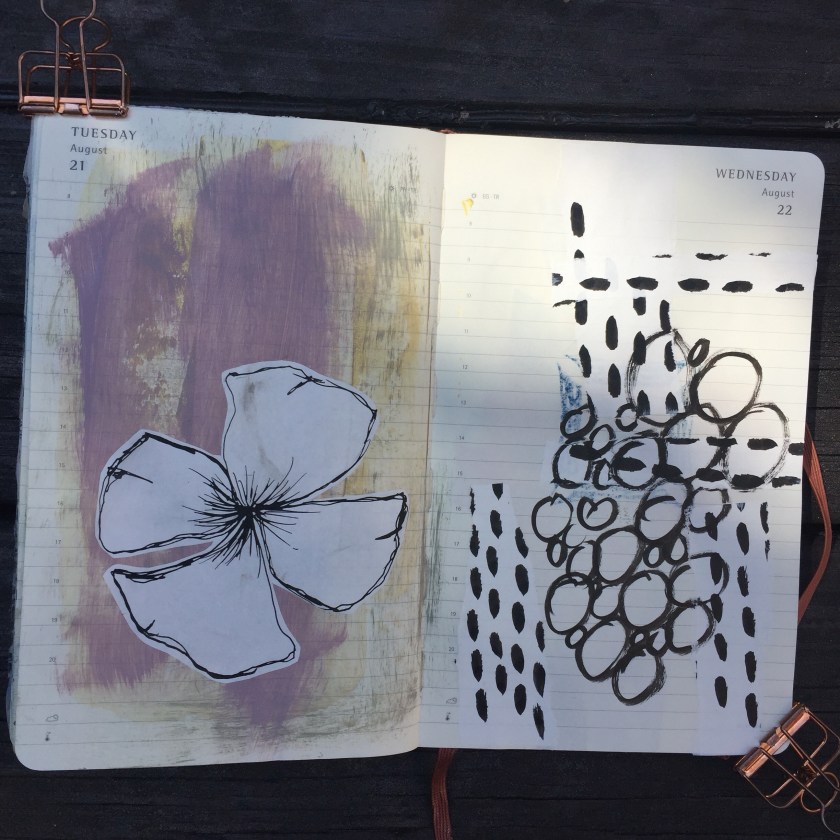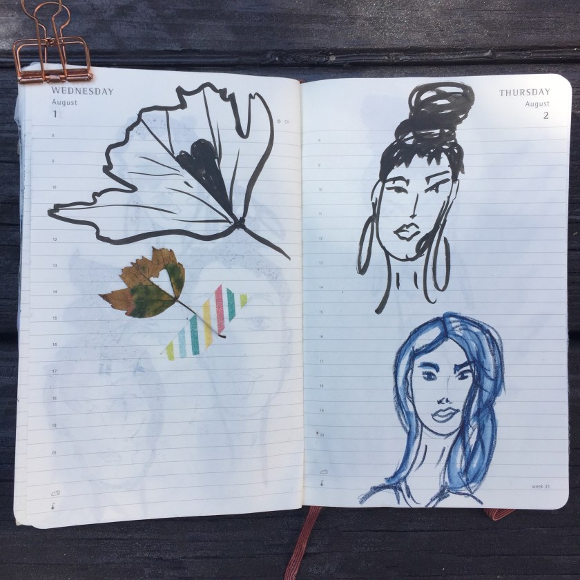 Into August in my daily Moleskine planner where I make some kind of art (sometimes this word is used loosely!).