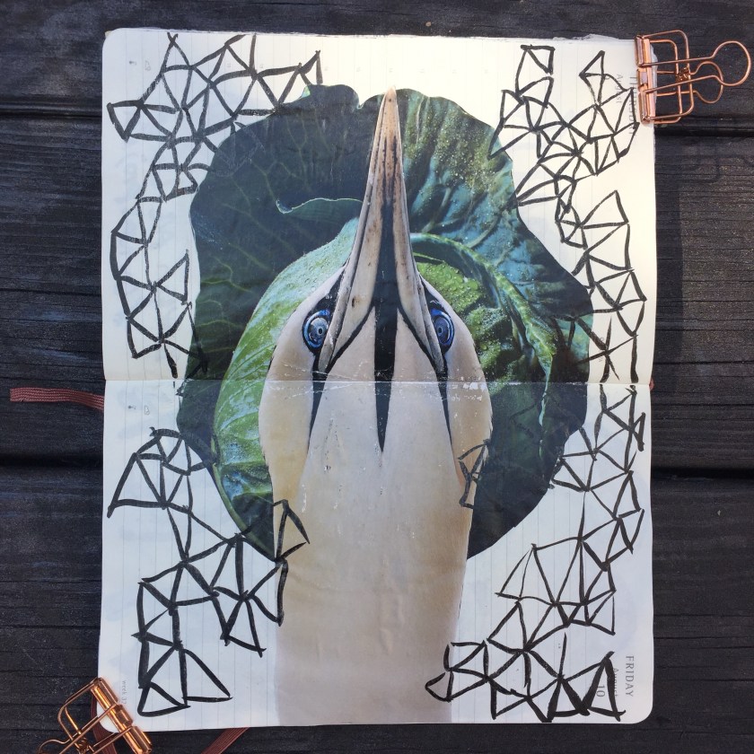 I am still enjoying faces, mainly this month starting with an acrylic base shape and some ink for the features. I made a couple of new stamps and mess about with them. Some stuck in pictures and leaves along with some paint smooshes!