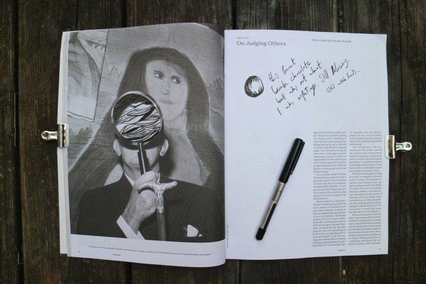While I was in Portland one of my friends had gifted me a new pen which I was keen to try so I somehow got the idea to read Kinfolk and as I read it, sketch in it and jot notes in it. Isn’t it strange how an idea can just come to you and you know it will be a winner! I just knew that this mini project would see me through the journey home.