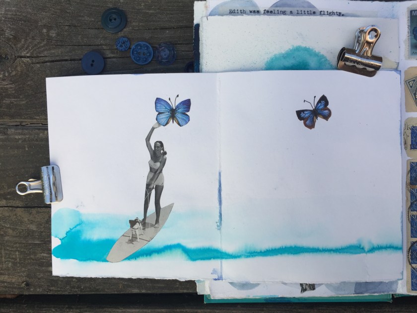 Loving this 100 day project, it is so nice to have a fixed palette and a dedicated sketchbook, it is filling so fast I might have to add some more fold out pages to fit it all in! Any new inspiration or technique I get to try out in blues and I am really enjoying it. Almost half way and not struggling to get pages done at all, in fact I am often starting a few at a time and of course always searching old National Geographic for fabulous blue pictures. Blue landscapes, blue cars, blue dresses, I want it all!