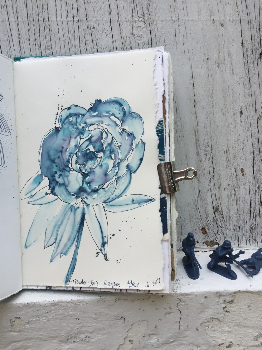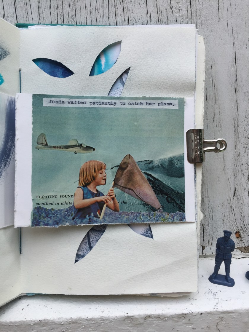 Half way! Still enjoying working with all blue. It is very freeing to only use one colour, it means I don’t have to worry about a new palette each time, I can just concentrate on the content, which this time has been a mix of collage and ink in brush pens.
