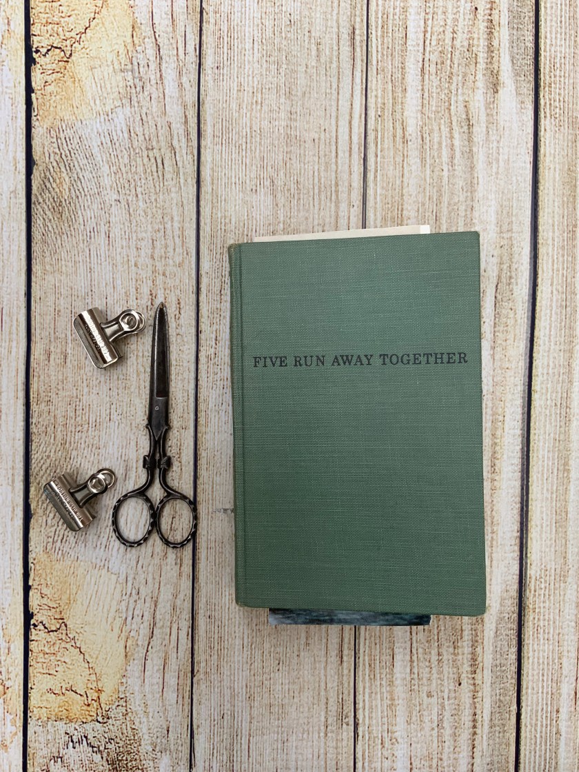 So I squirreled about in my old book stash and Enid Blyton’s ‘Five Run away Together’ popped out as bring just the size and thickness I needed.  I got this book from the library sale cart for nostalgia reasons although I never really liked the Famous Five, I thought the Secret Seven were way cooler!