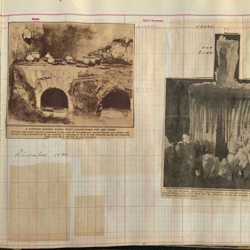 One last look through the old old old books and I spotted this giant ledger at the back for $4.00. It had newspaper clippings stuck in like a scrapbook but the last few pages were original but empty ledger pages, so I decided to buy it. On closer inspection when I got it home, I noticed that under the clippings on the first few pages were ledger entries from the late 1800’s to 1920. The clippings were from around 1930, so I can remove the newspaper and use it in my collages and the ledger papers will be great to use too!