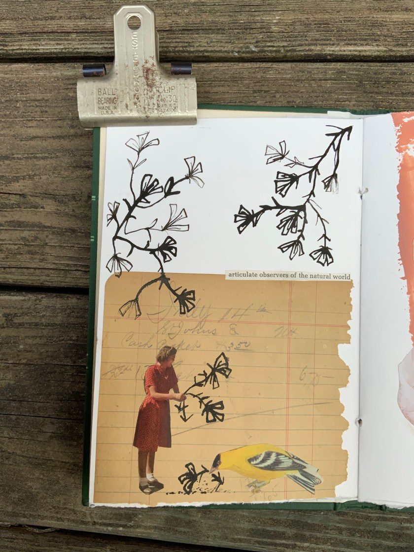 This last photo shows how I use ledger paper in my sketchbook. It adds a lovely background for collages and sketches.
