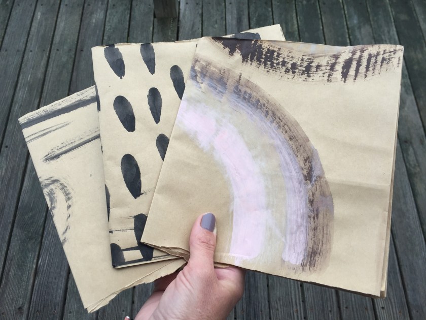 ‘Start where you are’ is my motto for the beginning of this new season over at Get Messy Art. I am on vacation with limited supplies and no book making stuff. So I made a quick trip to the local and historic hardware store and picked up a roll of kraft paper and a three inch wide paintbrush.