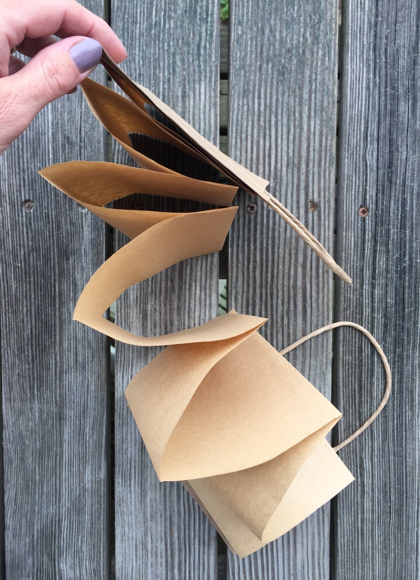 I unrolled a nice long piece of paper and cut it to size with some mini scissors (that took a minute and I have very ‘organic’ edges) which I then concertina folded and glued between two cut down paper bags. While I squashed this one flat under some heavy books, I carried on to make more books!