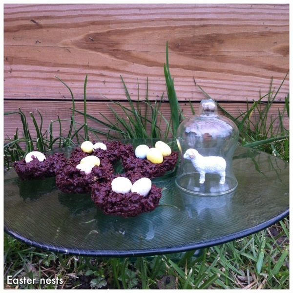 This weekend we will be egg hunting, cleaning up the local woods and creek, making easter nests and eating hot cross buns. In the spirit of the Easter season and Spring generally, this is what I have been liking this week- I am waiting for my Hot Cross Buns to rise as I write this. As usual I got covered in flour and ended up in a mess trying to make nice neat ‘crosses’ on my buns! Even though the boys are getting bigger, we will still have an Easter Egg hunt in the garden. It has rained all day today and the grass is about 7 feet high (ok, just a few inches..), but an egg hunt we shall have! I have the ingredients to make Easter egg nests using cereal (I use Trader Joe’s Shredded bite sized Wheats), chocolate and chocolate eggs. This is another messy yummy project which is essential to our Easter weekend! I have made them with cornflakes and shredded wheat and we like the shredded wheat best as it looks …